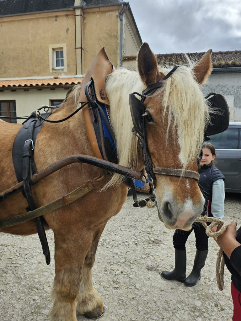 Tirée par un cheval au pas tranquille, la calèche a traversé chemins, villages et petites routes de campagne, offrant aux passagers une parenthèse hors du temps. Les regards se sont posés sur les champs en fleurs, les maisons de pierre, les arbres encore perlés de rosée. Malgré le ciel gris et l’air un peu frais, les visages étaient souriants, apaisés.