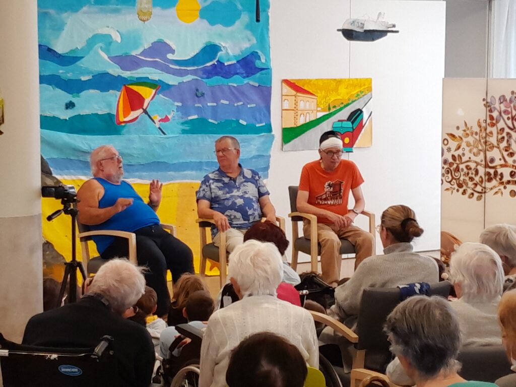 Sur scène, 4 résidents, 4 salariés et 3 seniors de l’Habitat Inclusif “L’Espace de l’Auxance” se sont donné la réplique avec énergie et humour.