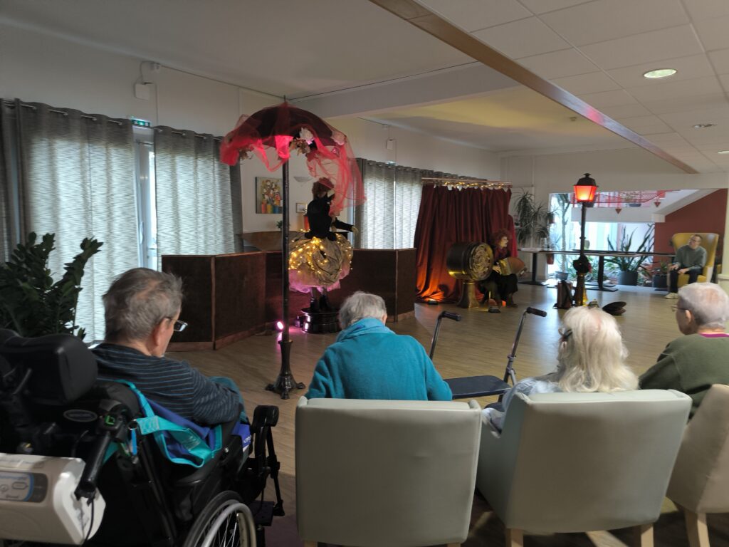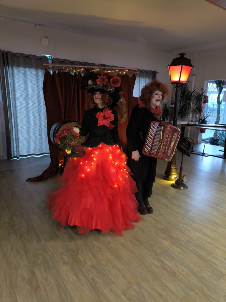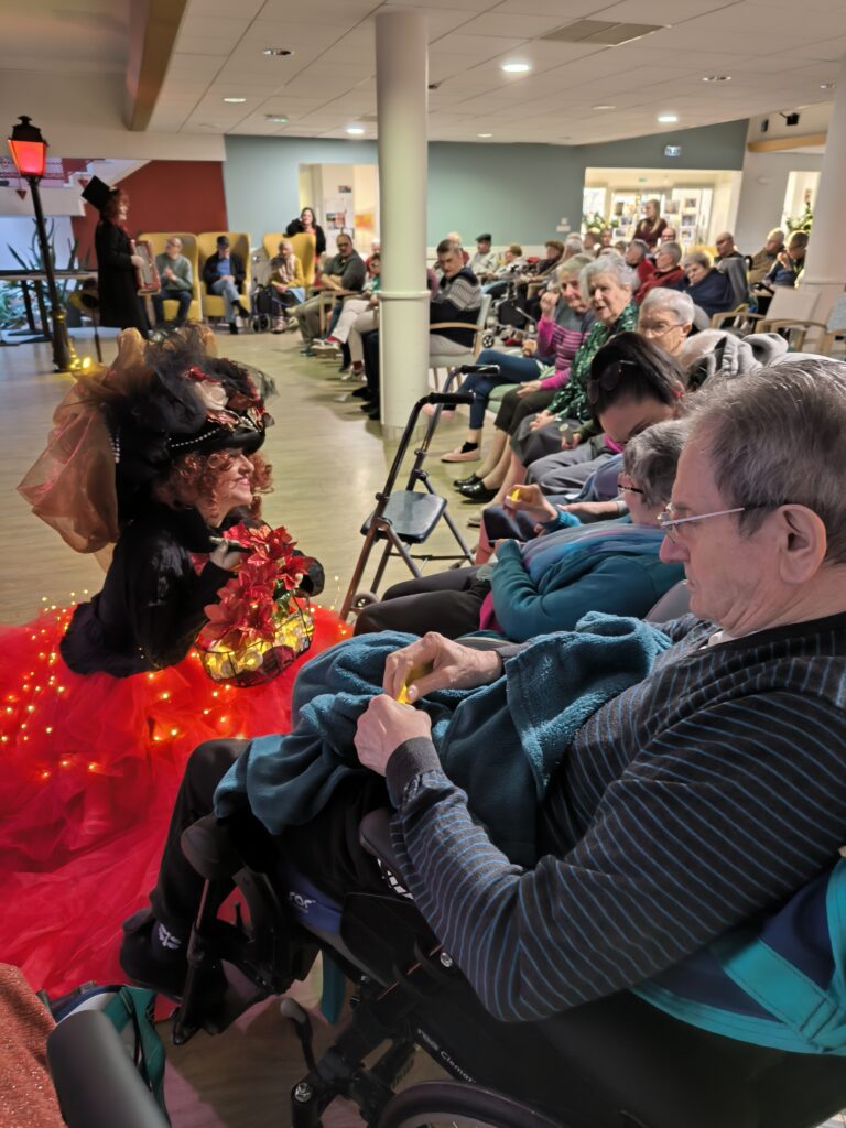 Le spectacle racontait l’histoire d’une extraordinaire poupée de Noël, offerte en cadeau à une petite fille. Les résidents et leurs familles ont suivi cette aventure avec émerveillement et émotion, partageant rires et yeux brillants.