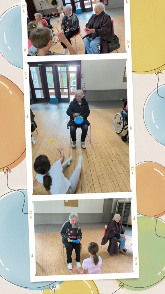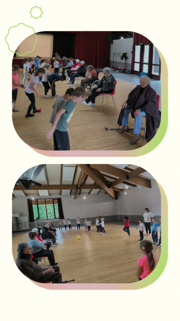 Au programme : des exercices physiques accessibles, des éclats de rire, des échanges spontanés et une belle dose de complicité ! Très vite, une atmosphère joyeuse et bienveillante s’est installée entre les générations. Les enfants ont encouragé les résidents avec enthousiasme, tandis que ces derniers ont partagé leurs conseils et leur bonne humeur.