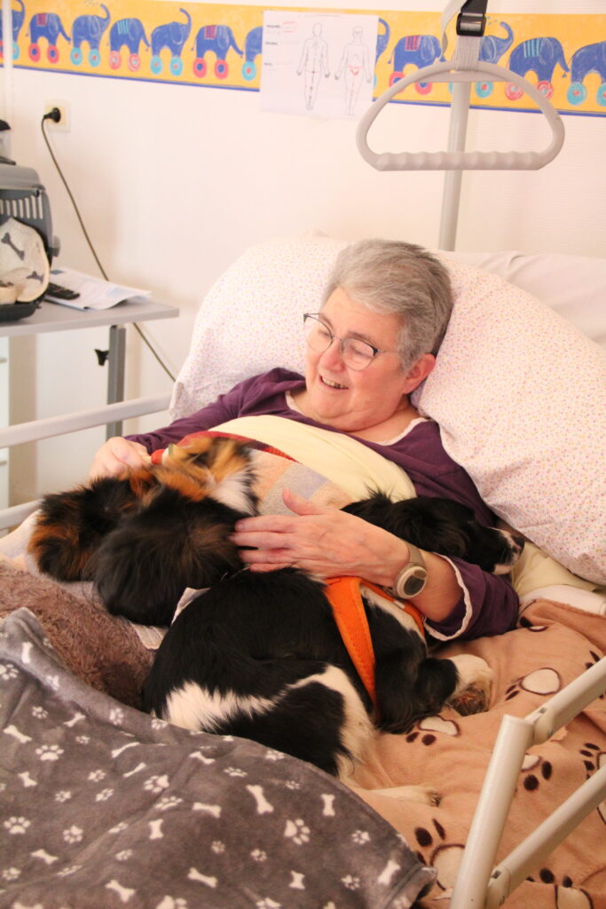 Les rencontres se déroulent parfois en salle d’animation, parfois directement dans les chambres. Chaque visite crée des instants précieux de partage. Les résidents participent avec joie et tendresse.