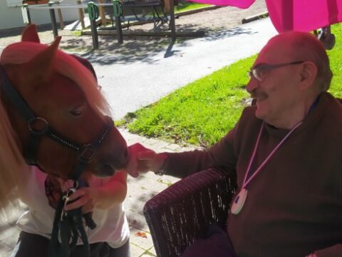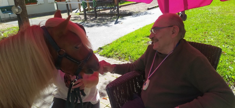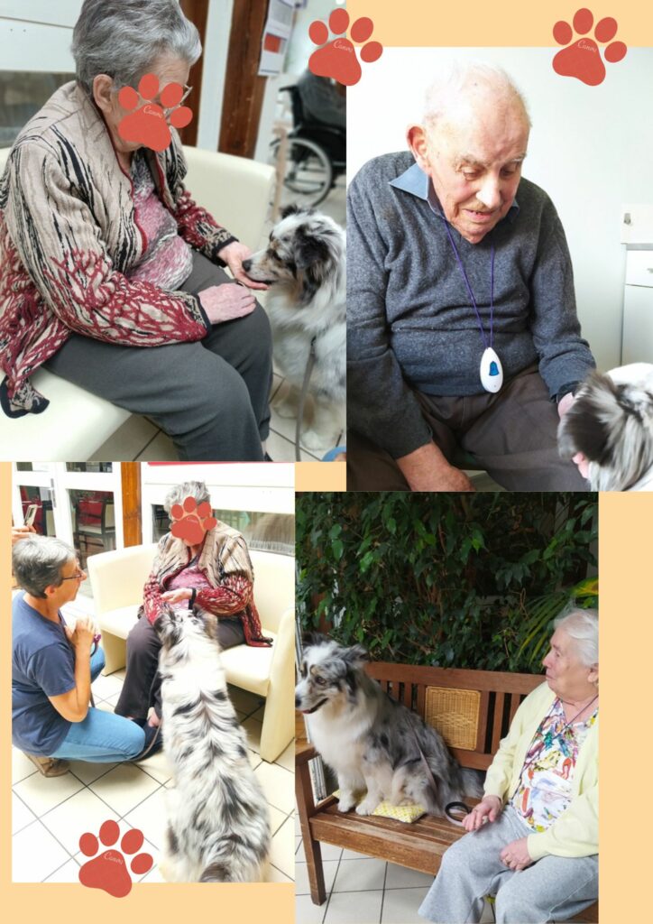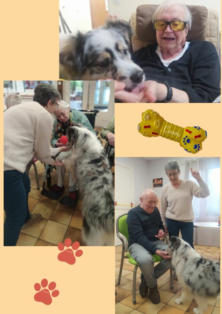 Lors de chacune de ses interventions, OR’FEE captive l’attention des résidents, petits et grands. D’une grande douceur et d’une écoute attentive, elle offre un moment de complicité apaisante, renforcé par son dressage exemplaire qui témoigne du lien profond entre l’animal et sa référente.