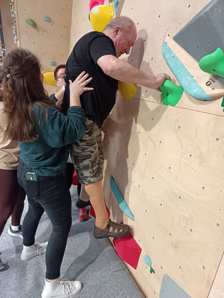 Les résidents de l’Abbaye, des Aures et des Doucets ont relevé ce défi avec enthousiasme lors d’une après-midi dédiée à l’escalade, encadrée par Lucille, enseignante en Activité Physique Adaptée.