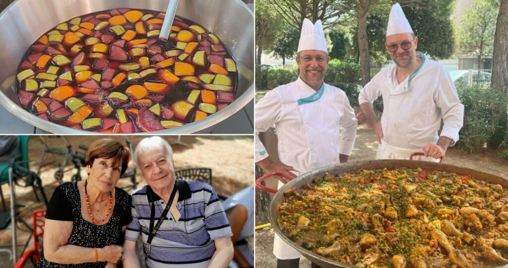 Les résidents ont profité pleinement de ce moment convivial : discussions animées, souvenirs partagés, éclats de rire… et bien sûr, l’odeur alléchante de la paëlla qui mijotait en cuisine.