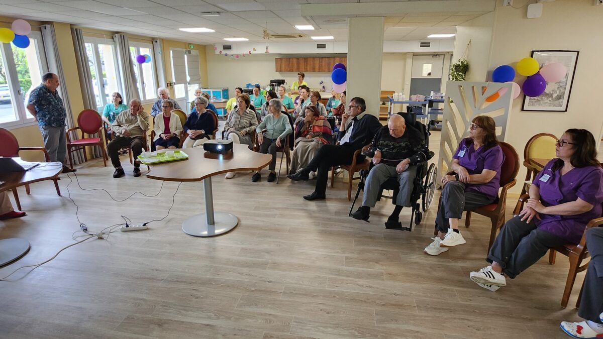 Yannick et Martine, bénévoles de l’association France Parkinson, sont venus au Clos Saint Roch pour animer une séance d’information. Ils ont présenté la maladie de Parkinson à un public composé de résidents, de familles et de membres du personnel.