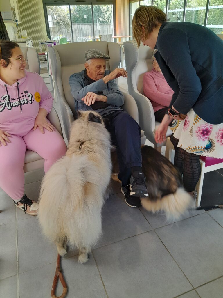 Merci aux intervenants de la médiation animale pour cette parenthèse pleine de chaleur. Ces visites font du bien au moral et au cœur… et nos résidents en redemandent déjà !