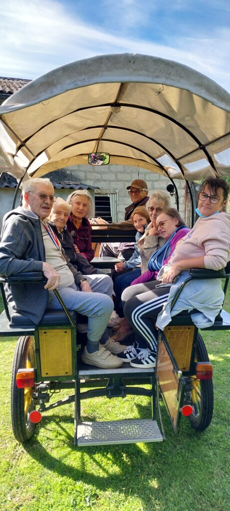 Le mercredi 1er octobre, plusieurs résidents de l’EHPAD Le Domaine ont eu le plaisir de partir en balade en calèche, dans les alentours de Saint-André-de-Lidon.