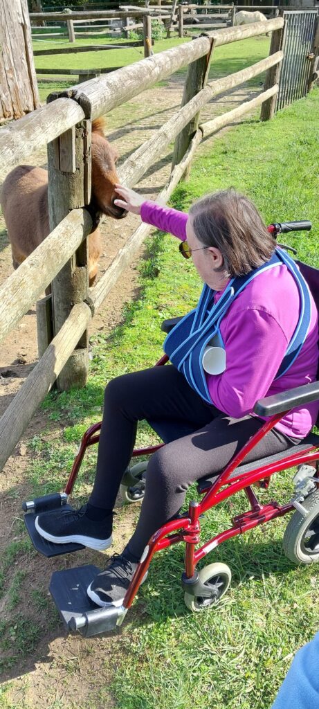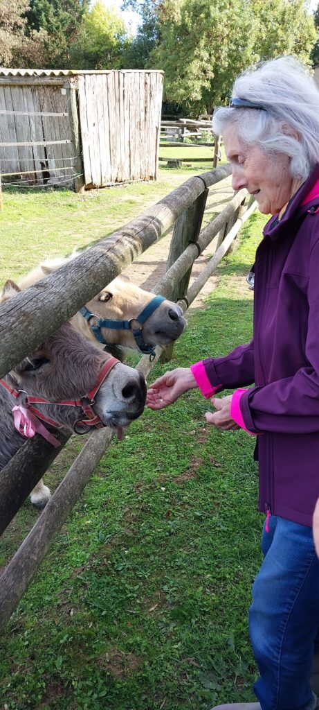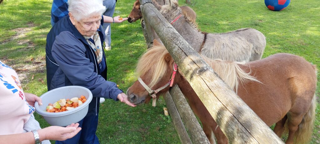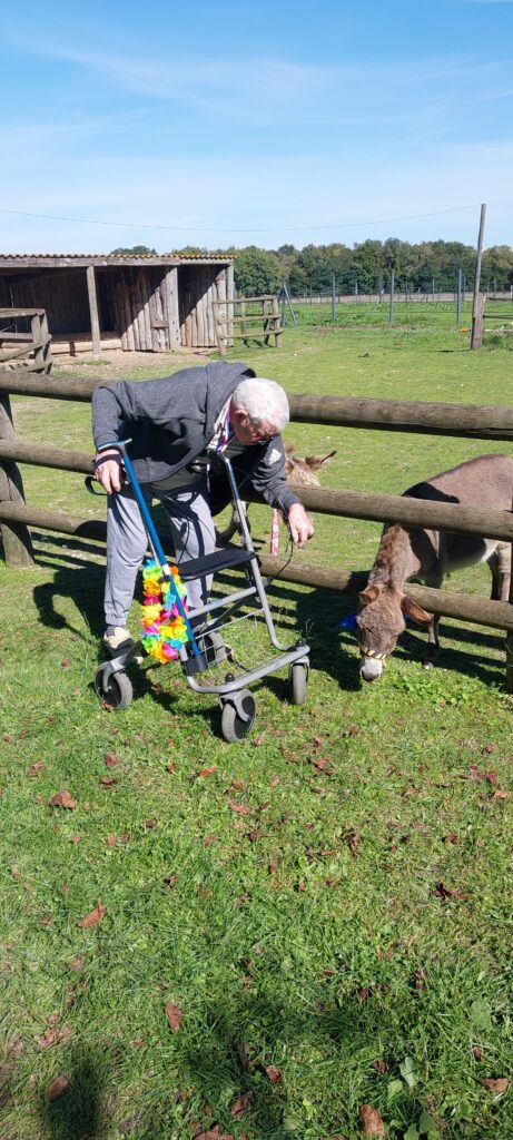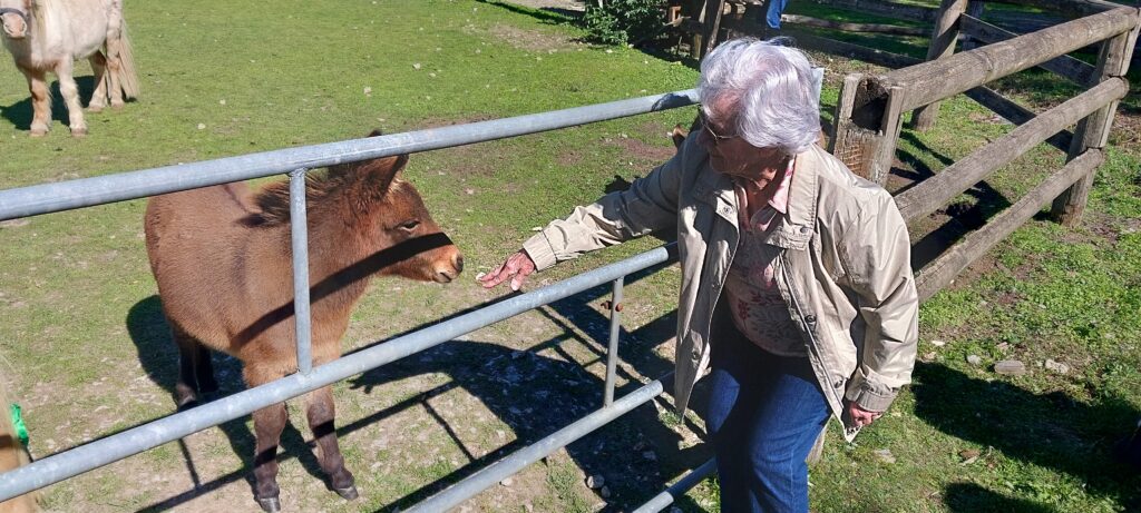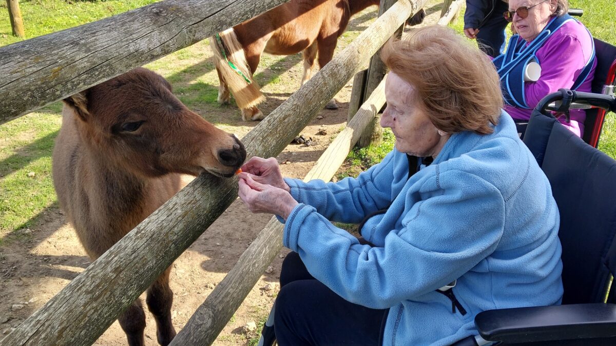 De retour à la résidence, les résidents ne sont pas rentrés tout de suite. Ils ont profité du parc de l’établissement pour prolonger ce moment de détente. Une visite à la mini-ferme leur a permis de croiser les animaux du Domaine, toujours curieux et attendrissants.