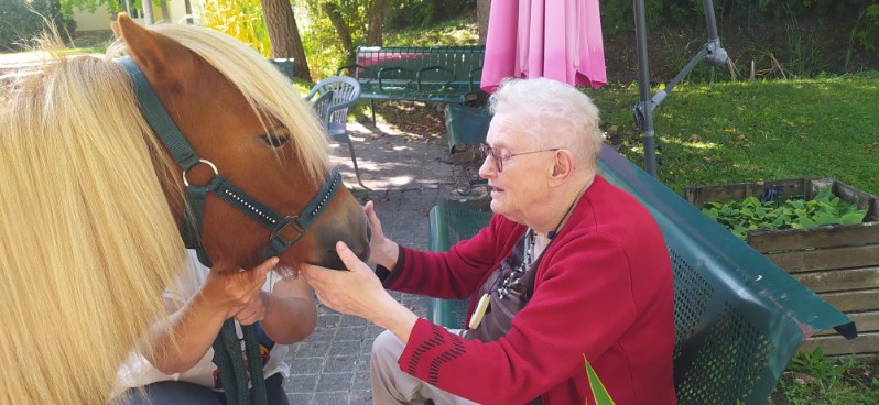 À la résidence La Source, certaines visites sont particulièrement attendues… Et parmi elles, celle de Pauline et sa fidèle ponette Opale fait toujours sensation ! Après une pause estivale, leur retour a été accueilli avec beaucoup de joie et d’impatience.